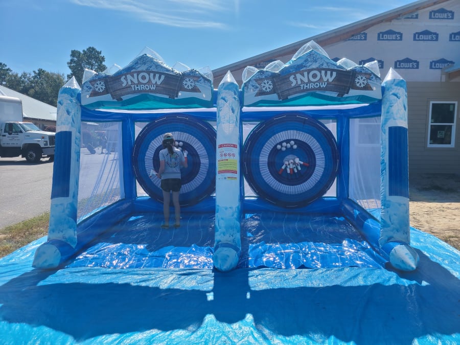 Looking for something different to add to your event? Look no further! Here is our Snow Throw! This game is for 2 people and the players can use either a snow ball or soft ice pick to toss onto the velcro target. This game will keep your guests entertained for hours!