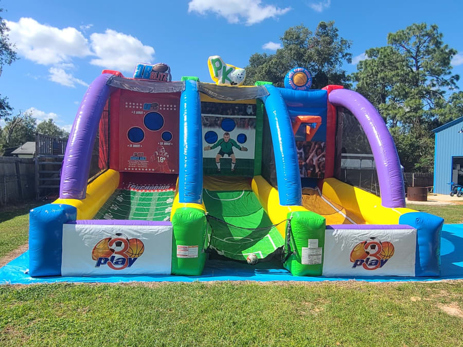 Are you ready to level up your event entertainment? Our 3 Play game is your ultimate solution for non-stop fun and competition! This impressive unit combines basketball, football, and soccer all in one exhilarating game, ensuring there's something for everyone to enjoy. Whether you're hosting a birthday party, corporate event, or community festival, the 3 Play game promises to deliver endless excitement for participants of all ages. 🏀🏈⚽