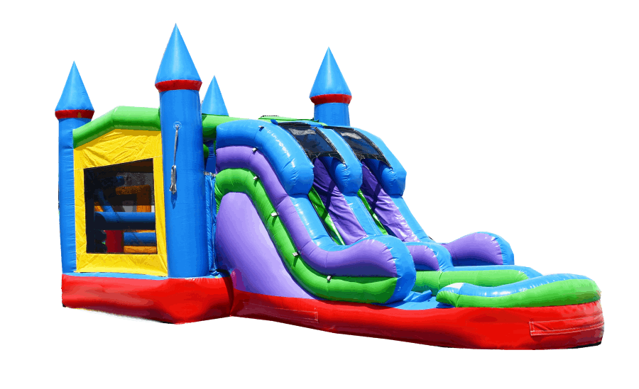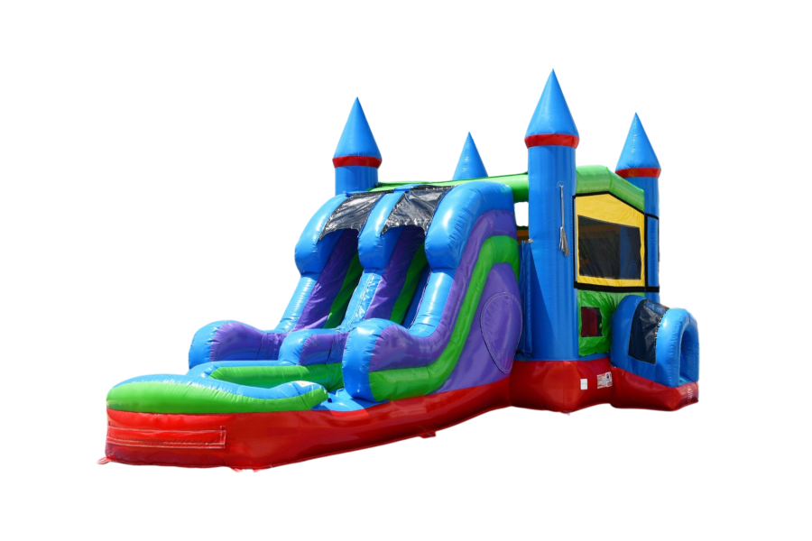 The 5 Color Double Lane Combo brings a tropical vibe and nonstop action to any kids' event. This colorful inflatable features a double-lane slide, two bouncing obstacles, a built-in basketball hoop 🏀 and a roomy bounce area for safe play. Ideal for younger children, the unit converts for wet or dry use, handling backyard birthday parties, school events, and family gatherings with ease.