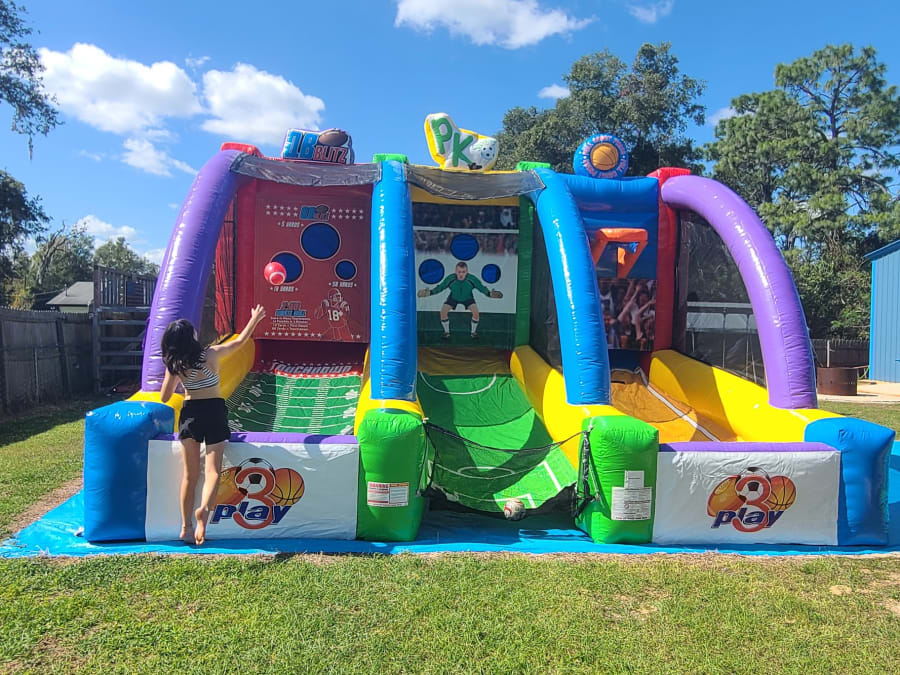Are you ready to level up your event entertainment? Our 3 Play game is your ultimate solution for non-stop fun and competition! This impressive unit combines basketball, football, and soccer all in one exhilarating game, ensuring there's something for everyone to enjoy. Whether you're hosting a birthday party, corporate event, or community festival, the 3 Play game promises to deliver endless excitement for participants of all ages. 🏀🏈⚽