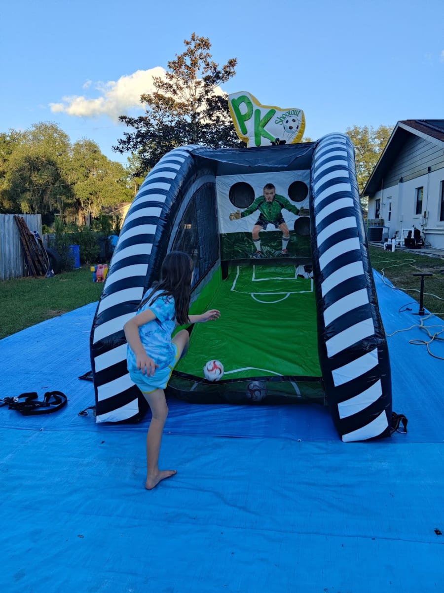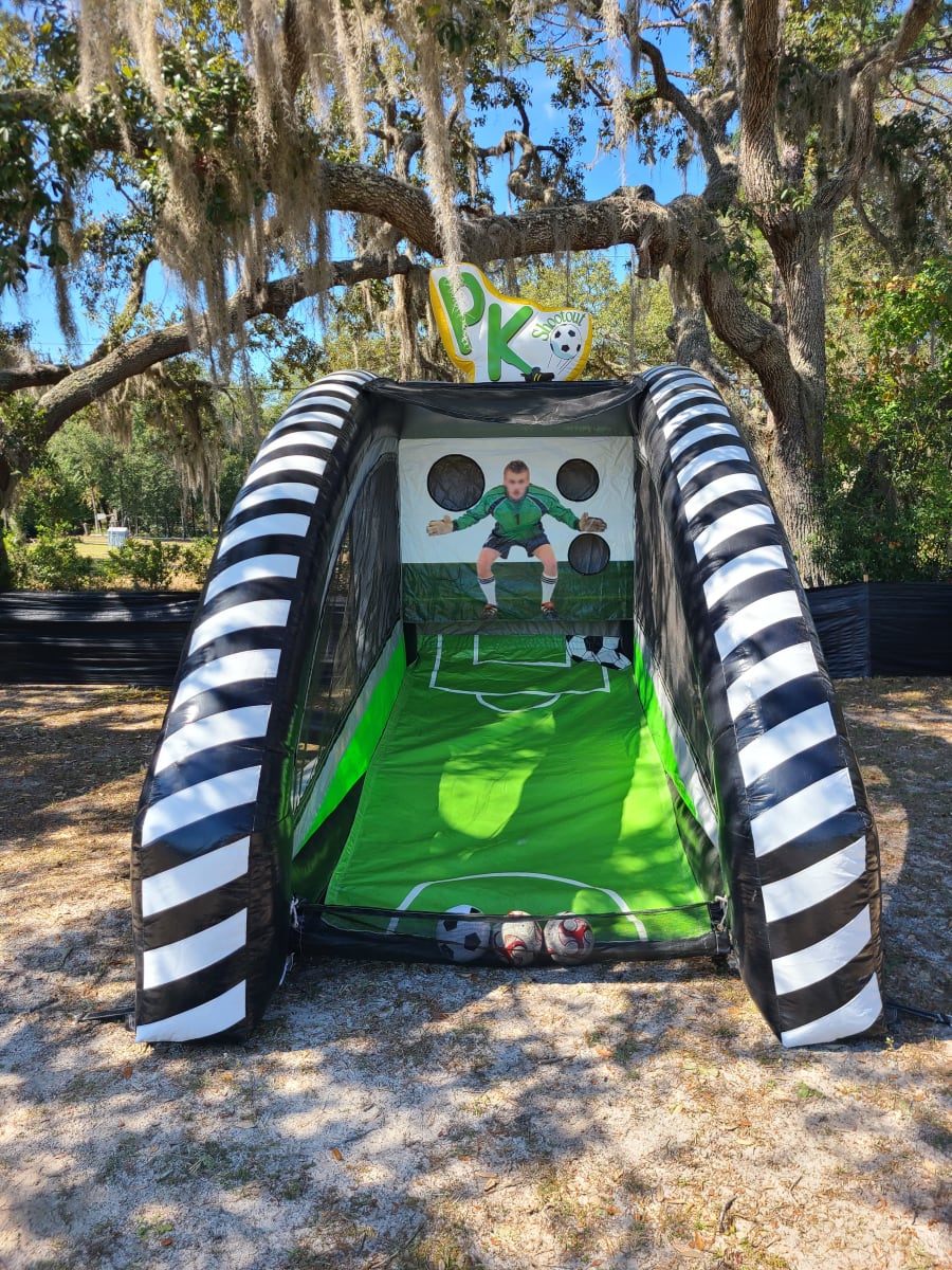 Here is our soccer shootout game! This game gives you different targets to kick a soccer ball through! This game is perfect for any type of event and will keep everyone entertained! This game can connect to our football game, bean bag toss, or basketball game for added fun!