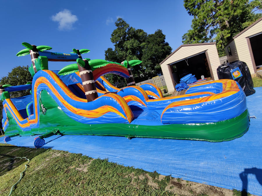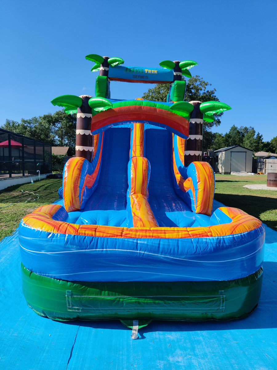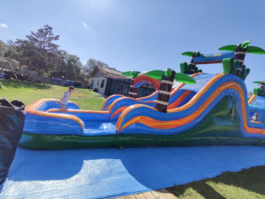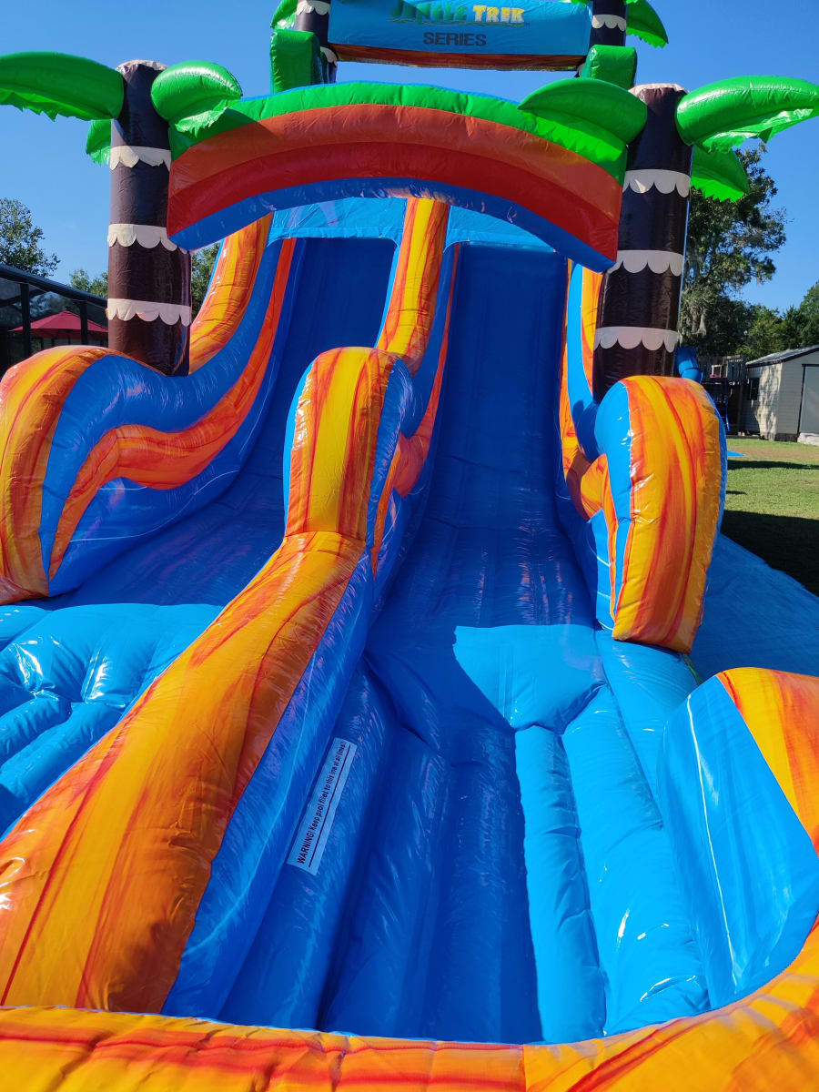 Climb through this 85-foot-long obstacle, make your way through 2 slides and end splashing down into the inflated pool landing! This unit will keep your heart racing all the way until the end! This 2-piece obstacle course is perfect for any splash bash, school event, summer camp or backyard party! This unit is accommodating to all ages!