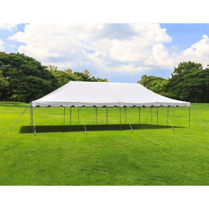 This 20x40 tent is a pole tent meaning we will set this tent up with poles to keep the tent standing. We will need to stake down the ropes so please ensure tent set up area has no septic tank, well, or sprinklers. If this tent is too small, we have other tent sizes and can even put other tents side by side to give you even more spacing. Contact us today at 352-652-9257 and we'd be happy to go over our tent options with you!